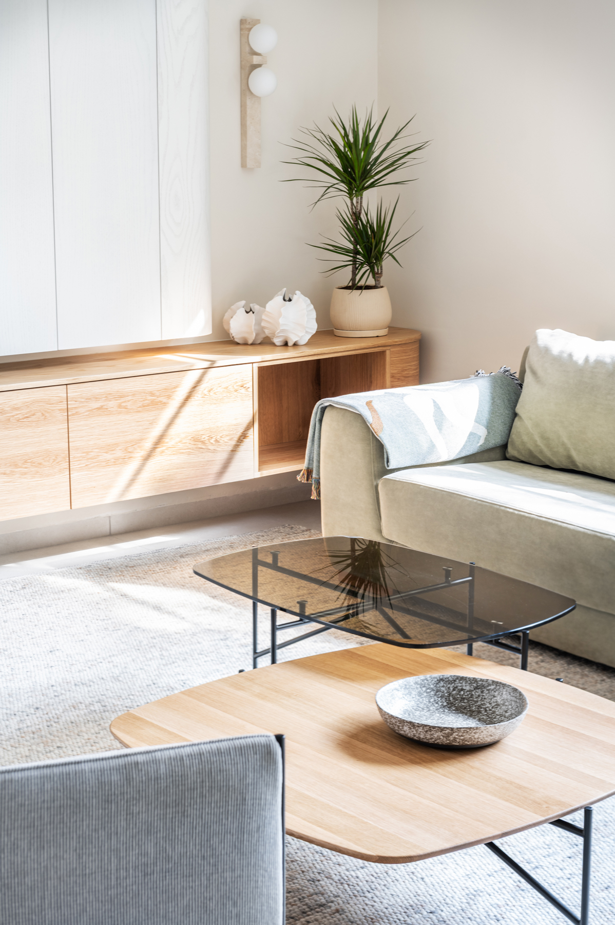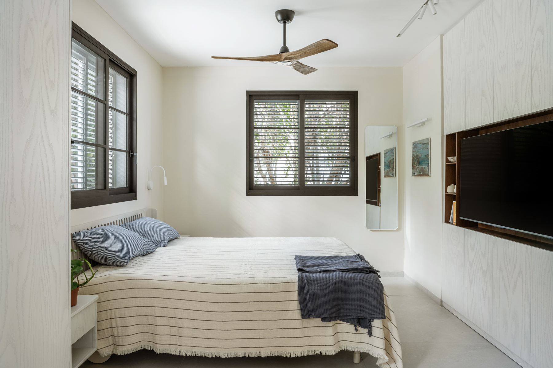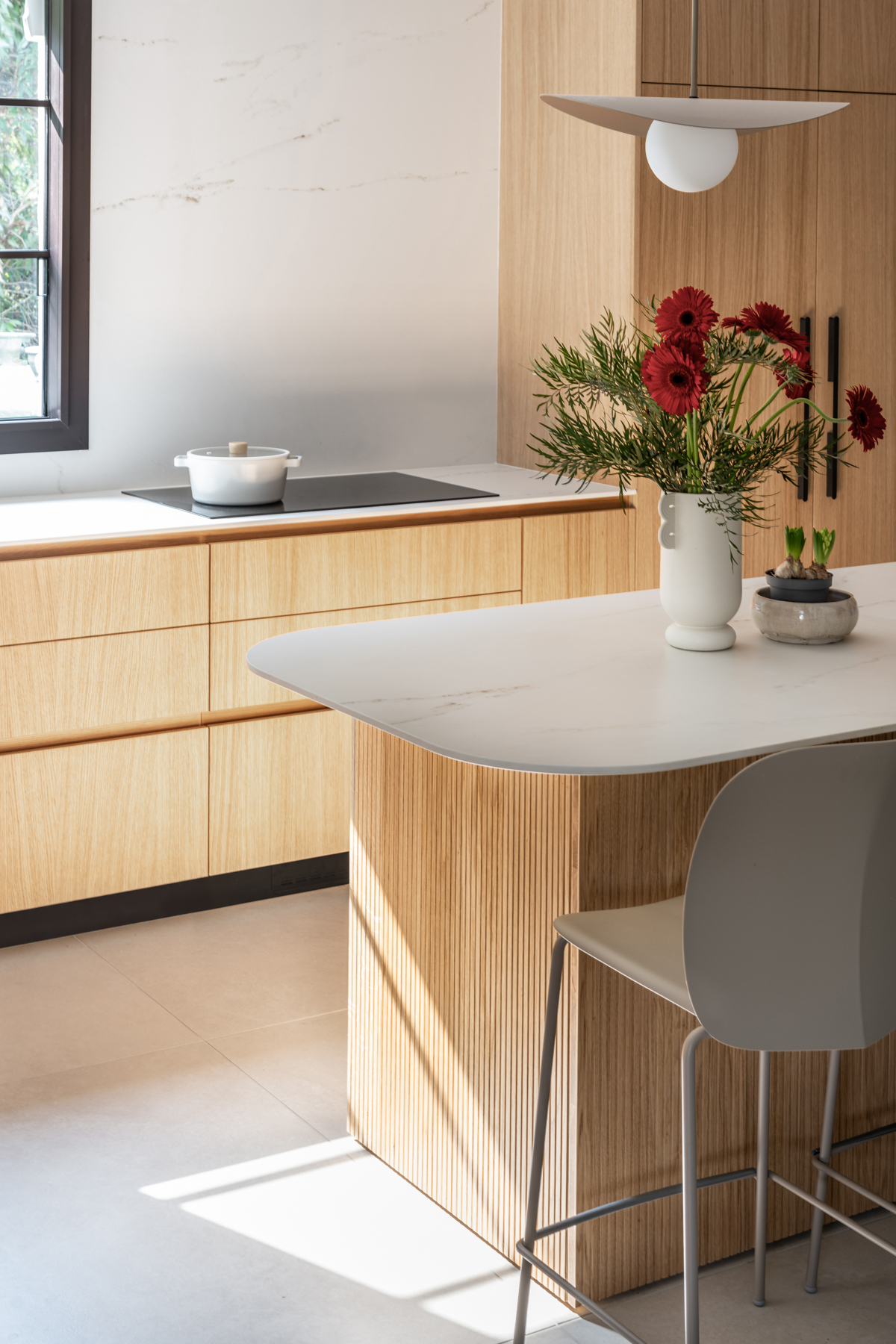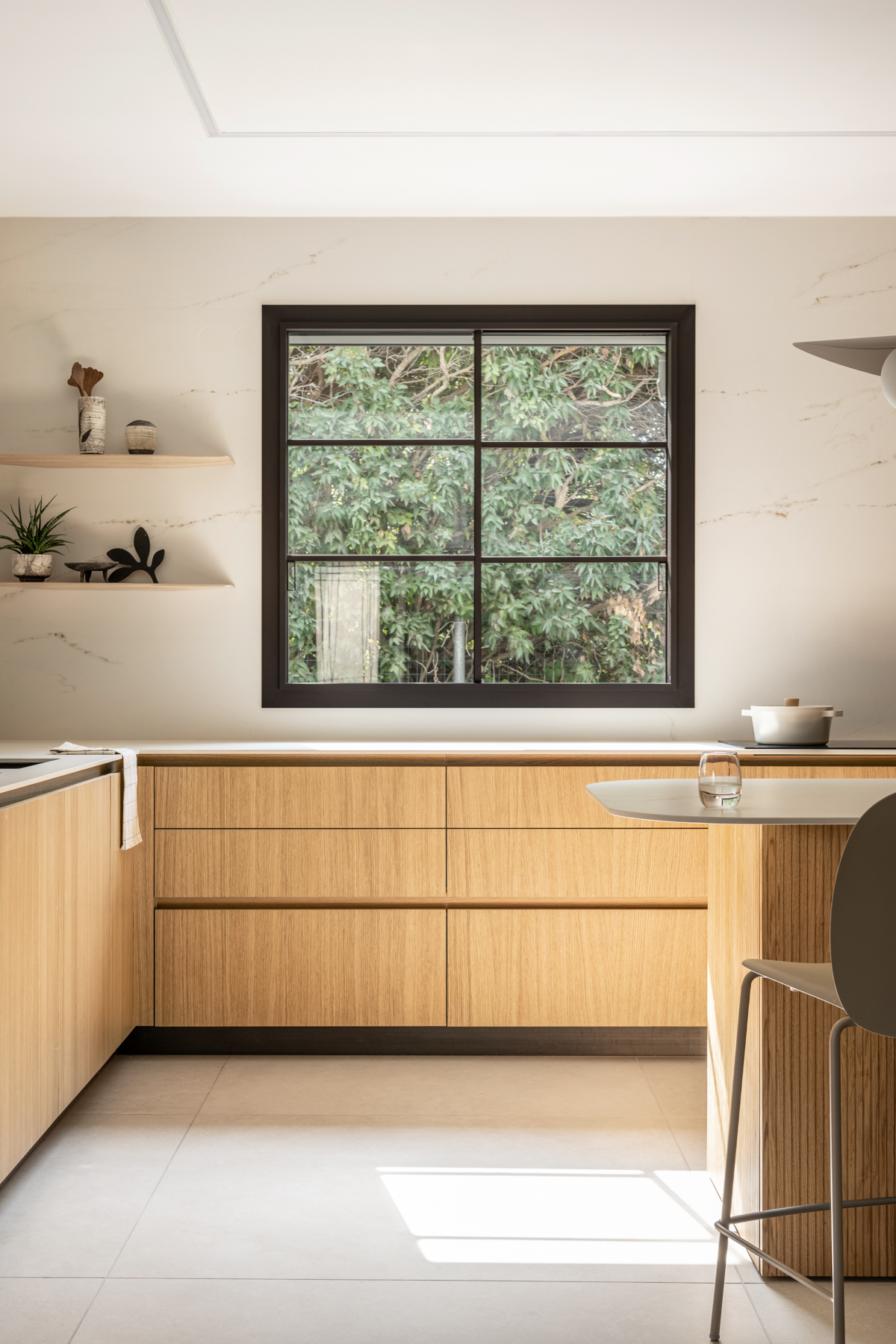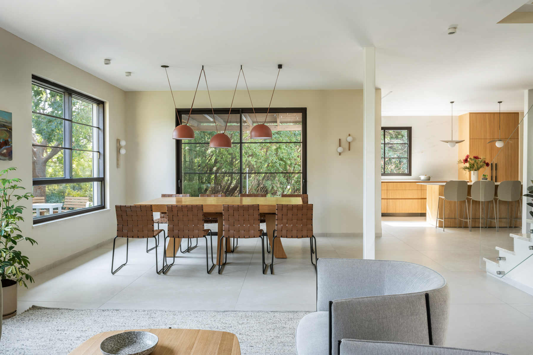 המטבח זכה להתייחסות מיוחדת והורחב על חשבון חדר כביסה קטן וצפוף. חדר כביסה חדש נבנה מחוץ לבית בבנייה קלה, מה שאפשר תכנון מרווח ופונקציונלי יותר של החלל המרכזי. בבית הותקנו מערכות חדשות, בהן חימום תת ־רצפתי ומערכות מיזוג מתקדמות. חדר ההורים אורגן מחדש והורחב על חשבון חדר ילדים סמוך שבוטל, והפך לחלל נעים ומרווח הכולל ארון קיר גדול, חלון עם ספסל ישיבה ומיקום קרוב למקלחת, לזרימה נוחה בין החללים. השיפוץ יצר בית מודרני, מואר ופונקציונלי, עם חללים רחבים ונוחים, המותאמים לחיים החדשים של בני הזוג ומשלבים תכנון מדויק עם תחושת חמימות וביתיות.