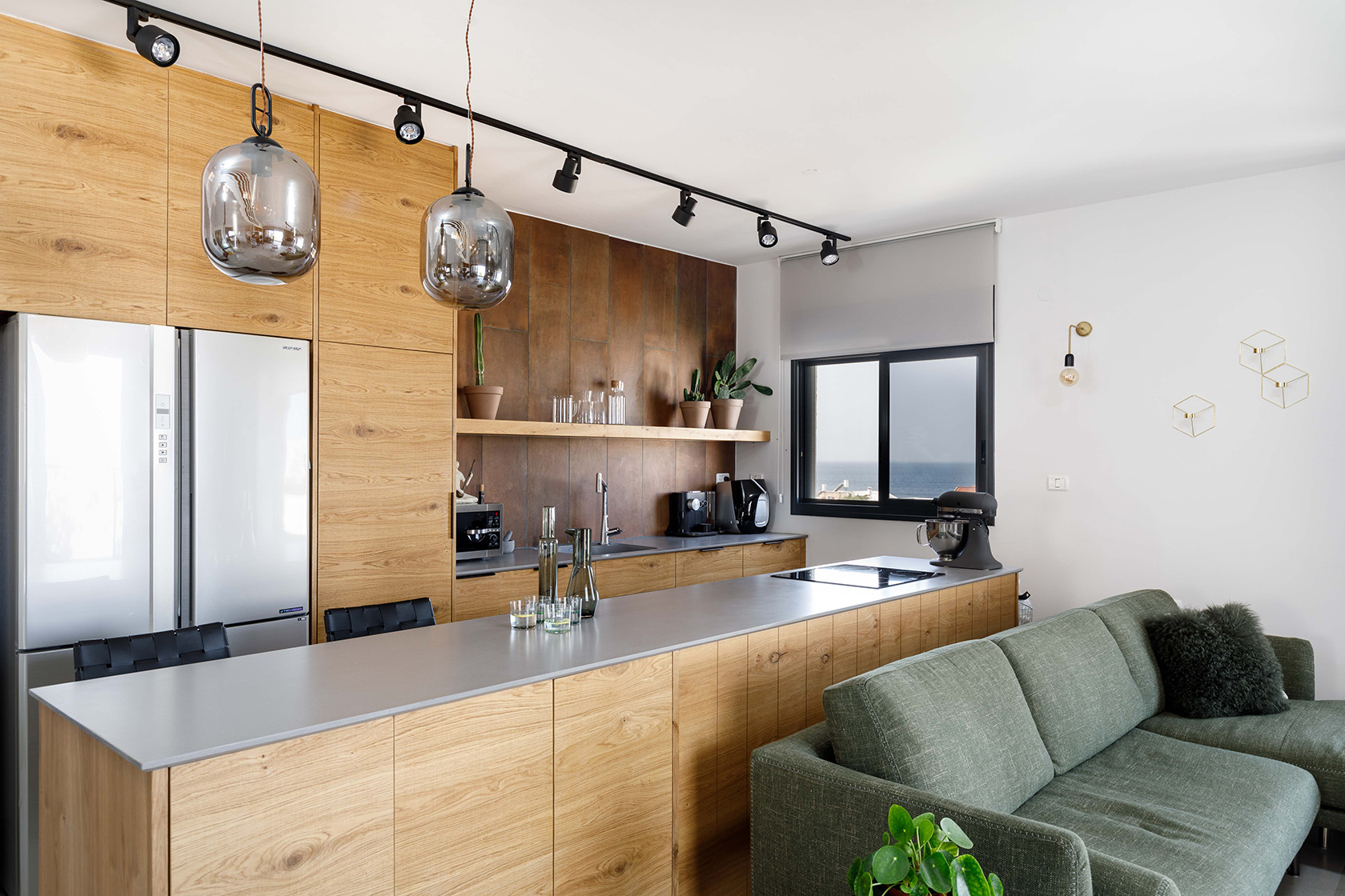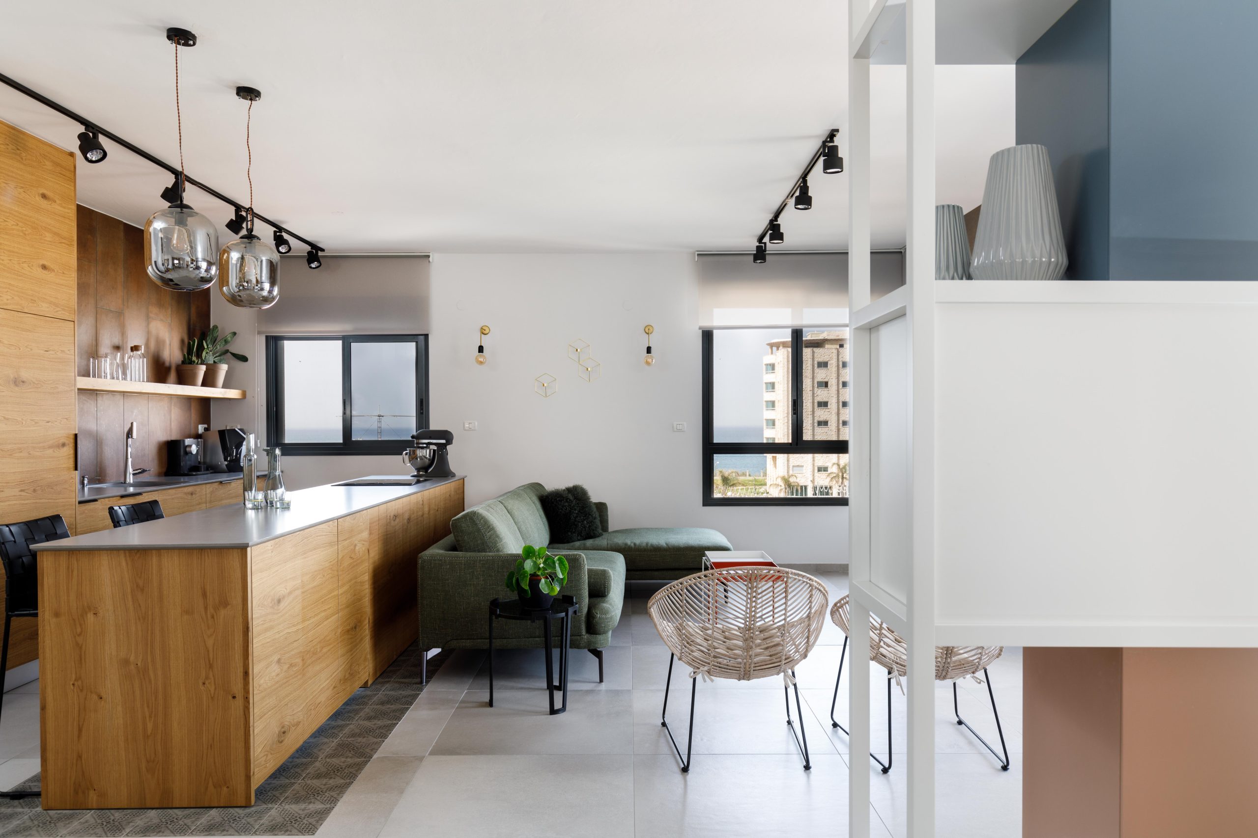 מדירת קבלן – לדירת נופש בהשראת לופט אורבני, 114 מ"ר + מרפסת 6 מ״ר שהתחילה מדירת קבלן טיפוסית בנהריה בעלת חמישה חדרים, עברה תכנון מחדש והפכה לדירת ארבעה חדרים מרווחת ומפנקת, בסגנון לופט אורבני עם נוף עוצר נשימה לים ולראש הנקרה.